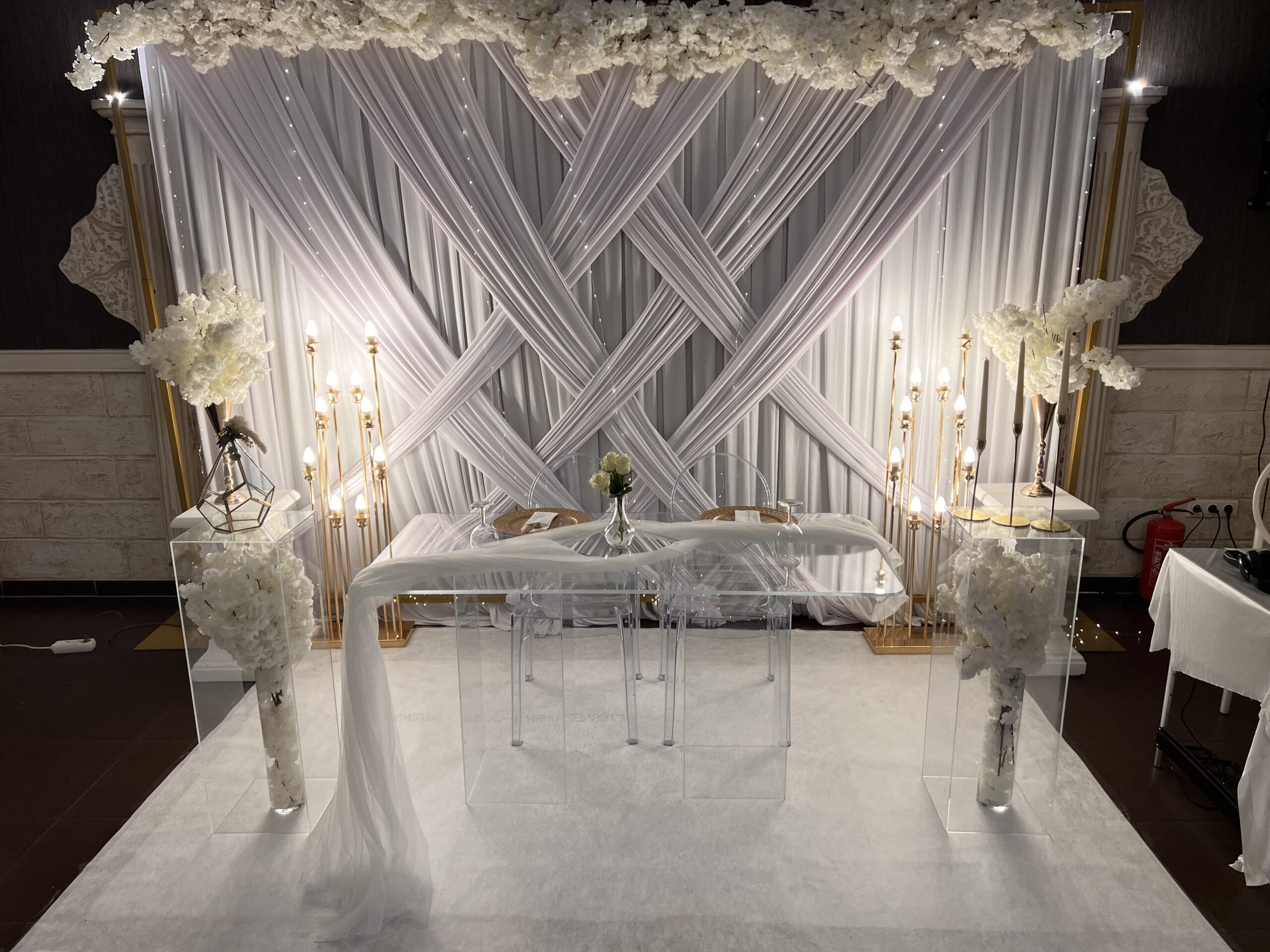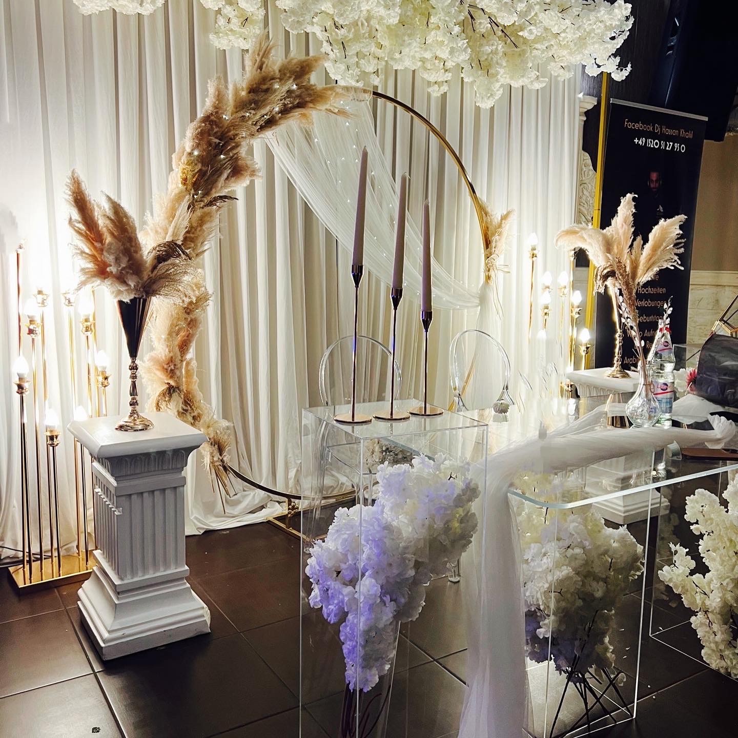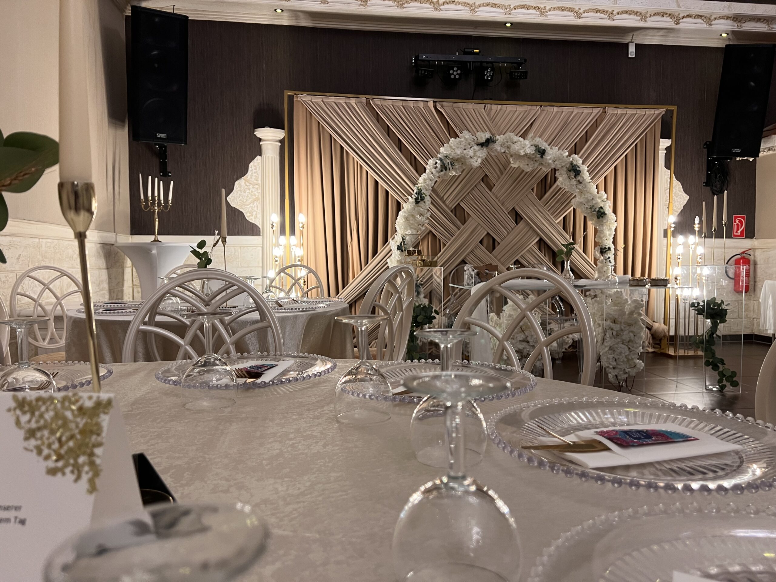 Wir haben die aktuellsten Dekorationen und dekorieren das Restaurant für jedes Paar individuell nach deren Wünschen. Ob Silber oder Gold-Thema, ob Brauttisch oder Hennathron oder Plexiglastisch und Stühle. Wir haben alles da. Wir nehmen uns Zeit und setzen uns jedes Mal mit den Paaren vorher noch einmal zusammen und planen alles gemeinsam.